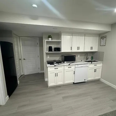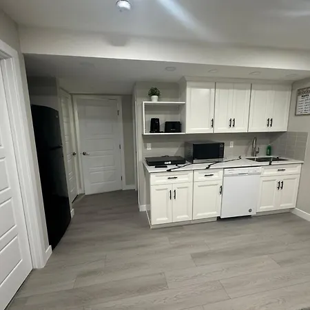Cozy 1 Bedroom Basement Apartment includes a fully equipped kitchen with a washing machine and soundproof walls for utmost comfort. For added convenience, a separate toilet and a shower are available at the apartment. Furthermore, you can enjoy free toiletries provided in the bathroom.